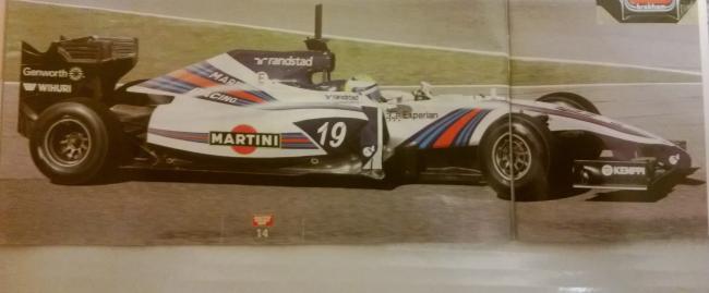 A falta de confirmación oficial por parte de Williams (que mucho se está haciendo esperar para todo lo que se está hablando), todo parece indicar que uno de los secretos mejor guardados de esta pretemporada, los colores que lucirá la escudería británica en 2014, han sido desvelados. En su edición de esta semana, en su versión de papel, la revista italiana Autosprint publica una foto con la que podría ser la decoración definitiva de Martini Racing que lucirán los monoplazas de Williams esta temporada.