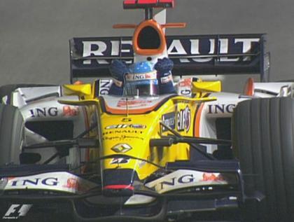 Sin embargo Singapur aún deparaba una última sorpresa. La segunda salida del Safety Car a pista eliminaba toda la ventaja que había acumulado. Tener a Rosberg y Hamilton empujando por detrás en las últimas nueve vueltas no es el final de carrera plácido que hubiera deseado. Pero Alonso aprovechaba el nuevo arranque de carrera para tomar unos metros de ventaja que le quitaban cualquier tipo de presión. Primera victoria de Alonso desde Italia'08 07, vigésima de su carrera y la primera de Renault desde Japón'07 08 06. El segundo rayo de luz, junto al segundo puesto de Nelsinho en Alemania, tras una temporada muy oscura.