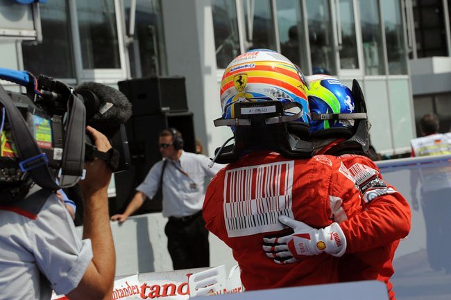 Aún así, es raro ver que alguien toma un decisión y posteriormente está tan triste en el podio sin ganas de celebrar nada. Si es por el equipo, la felicidad de Fernando Alonso y Stefano Domenicali se le tenía que haber pegado. El abrazo entre el brasileño y Alonso es el mejor ejemplo. Massa lo rehuye literalmente.