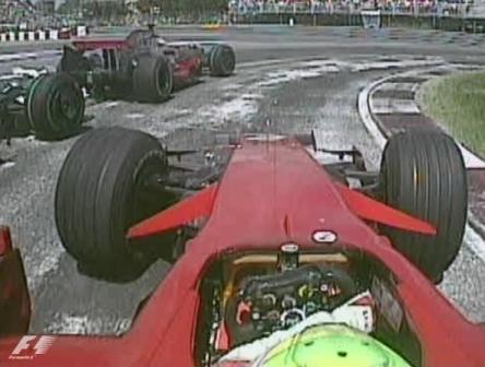 Vale que Heikki Kovalainen se lo ha facilitado un pelín al alargar con su apurada de frenada la entrada al viraje de Rubens Barrichello, pero como siempre sucede en estos casos, hay que tener las suficientes agallas de meterse como se ha metido Massa, subido por el piano y casi pisando la hierba. Un 10 para el brasileño en esta acción. Eso es lo que a menudo echamos en falta desde que se fue Montoya: gente con agallas para intentar adelantamientos "delicados".