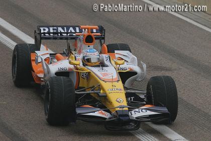 A las 12:20 de la mañana, Fernando Alonso ha dado la primera vuelta de instalación con el nuevo R28 que tantas alegrías tendría que reportarnos en 2008. Como ya sucediera con el debut del FW30 de Williams, la niebla ha sido la gran protagonista, pero por suerte no ha impedido que veamos las primeras imágenes de la nueva creación de Renault. A primera vista, y como en la mayoría de monoplazas, el alerón delantero está cargado de novedades, y, efectivamente, parece que se confirma la quilla nula del R28. Aquí tenéis las primeras fotos directamente desde Motor21.
