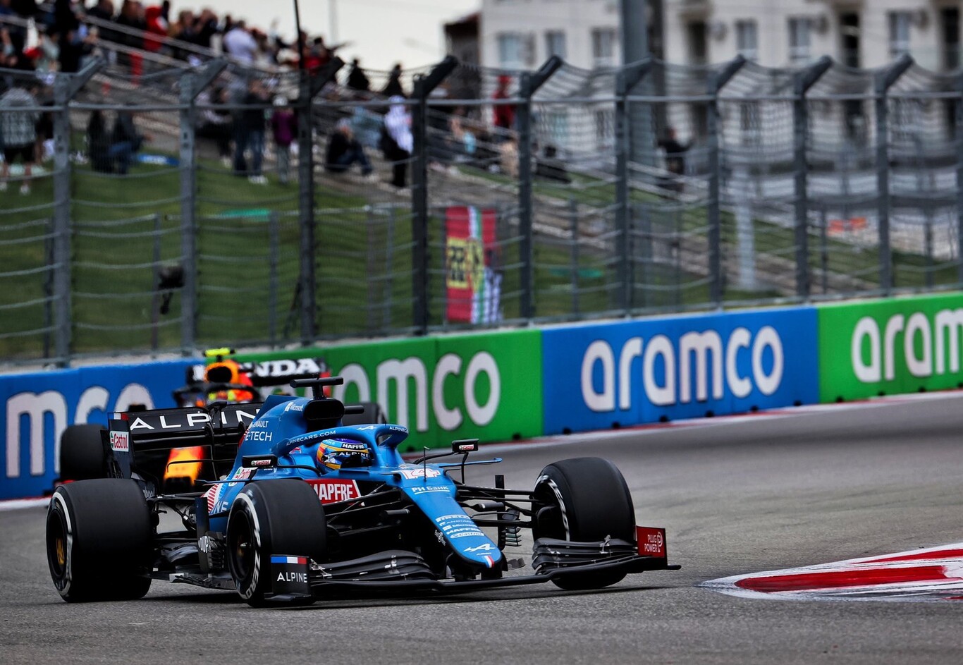 El ritmo del Alpine en Sochi fue sorprendentemente bueno, al menos en manos de Alonso. Incluso se permitió el lujo de adelantar en pista a los dos Red Bull, algo impensable en otros Grandes Premios. Eso sí, la salida de Fernando Alonso fue bastante polémica, aunque se saldó sin ni siquiera una investigación.