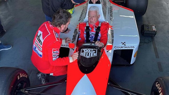 Entre esos coches estaba un McLaren de Fórmula 1 de finales de los años 80 que Fernando Alonso ha regalado a sus padres. Tanto Fernando Alonso como su padre, ambos vestidos con un mono idéntico al que llevaba Ayrton Senna en 1988, lo pilotaron en el circuito aragonés.