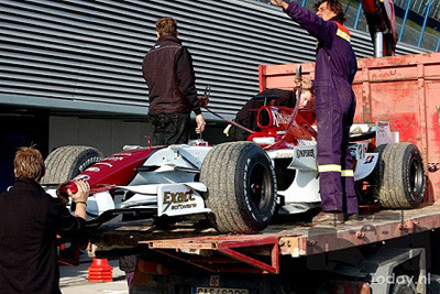 Primera hora de la mañana en Jerez, curva número nueve también conocida como la curva Ángel Nieto, el romano pierde el control del Force India y se sale de pista a gran velocidad. El italiano ileso, el coche dañado pero no irreparable. La mañana de pruebas, perdida. Esperemos que en Force India hayan tomado buena nota de las capacidades de pilotaje de Fisichella.