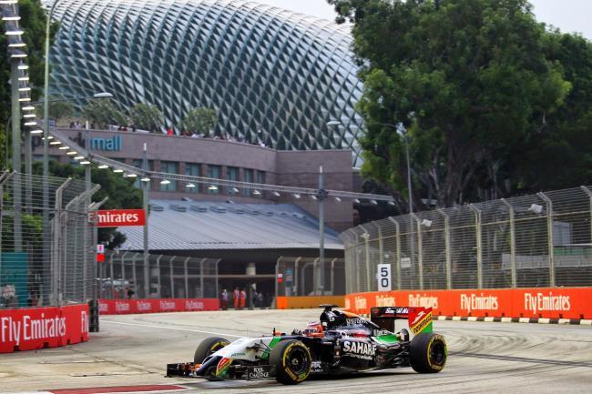 Force India comenzó muy bien esta temporada, incluso Hülkenberg encadenó diez Grandes Premios en la zona de puntos, y se le podía observar con regularidad entre los cinco primeros, pero en las últimas tres carreras solo ha logrado un punto. El descenso de la escudería es tal que, a pesar de contar con el propulsor Mercedes PU106A, en Singapur no pudieron acceder a la Q1, quedando sus pilotos relegados al puesto 13 (Hülkenberg) y al puesto 15 (Pérez). Una situación nada favorable si se considera que en el circuito callejero de Marina Bay es complicado adelantar y además sus rivales directos, los pilotos de McLaren, partirán por delante.