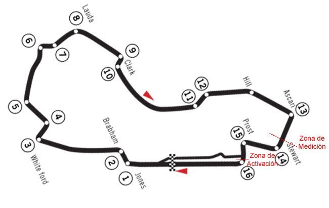 También se ha modificado el punto de medición. Ahora estará mucho más cerca del punto de activación respondiendo a las quejas de que si estaba muy lejos, en esas tres curvas hasta la recta principal la distancia podría disminuir. Ahora estará dos curvas antes de la zona de uso, a la entrada de la 14 más conocido como curva Stewart. Eso sí, siguen olvidándose de los aficionados. ¿Cómo vamos a saber que un piloto puede accionar el alerón?. ¿Tendremos que esperar a que quite las pegatinas al piloto que tiene por delante?.