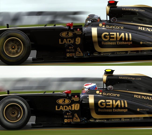 En la parte superior de la foto, Nick Heidfeld calza en su Renault R31 el compuesto blando de los neumáticos Pirelli. En la parte inferior, Vitaly Petrov, con los neumáticos duros. A pesar de la diferencia en la gama de colores presentada por Pirelli, la diferencia entre el color amarillo (blandos) y plateado (duro) es complicada de ver a simple vista.