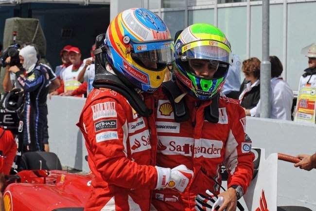 En un GP de Alemania que ha respetado la amenazante lluvia hemos visto una de las más cerradas carreras de la temporada de Fórmula 1. Una guerra cerrada entre los tres principales espadas del fin de semana, los Ferrari y el Red Bull de Sebastian Vettel que desde el principio demostraba que no estaba por vender barata la victoria en su casa. Pero al final la victoria ha sido para un rapidísimo y visceral Fernando Alonso, seguido de su compañero Felipe Massa que corona el doblete de Ferrari.