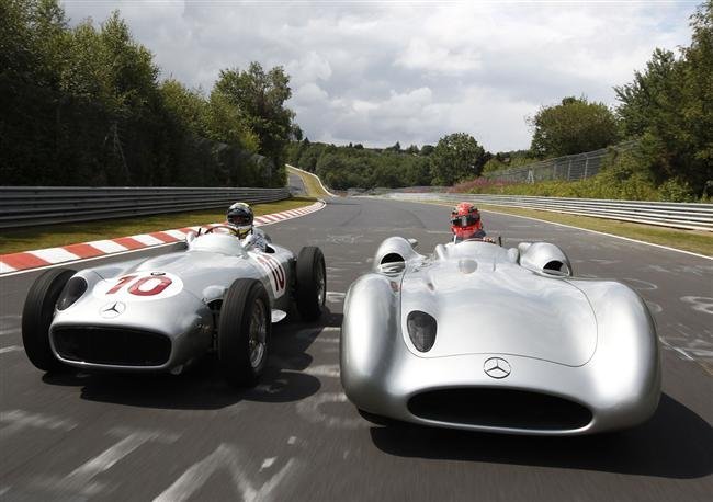 La semana pasada comentamos que Nico Rosberg iba a tener el privilegio de rodar en el circuito de Nürburgring Nordschleife al volante de una de las joyitas de la Fórmula 1, el Mercedes-Benz W196 de Juan Manuel Fangio. Quedaba la duda de si Michael Schumacher iba a ser invitado a la fiesta. Al final imperó la lógica y así fue.