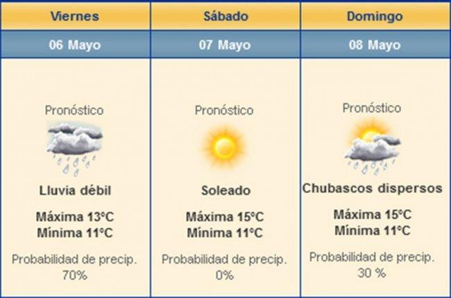 La excepción que confirma la regla en lo referente a que no llueva podría ser este domingo. Las previsiones apuntan a un 70% de posibilidades de agua para el viernes y un 30% para el domingo. Esta vez, las temperaturas son bastante más bajas de lo normal, con mínimas de 11ºC y máximas de 15ºC.