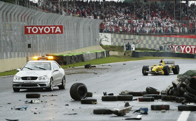 En ese entonces, los fabricantes de neumáticos solo podían traer un compuesto para pista mojada y puesto que Bridgestone optó por el intermedio, la FIA tuvo que claudicar y aceptar que tomar la salida en tales circunstancias era demasiado peligroso. Al final la carrera "solo" vio retrasada su salida en diez minutos aunque cuando finalmente empezó, lo hizo detrás del coche de seguridad. Hicieron falta ocho vueltas detrás del coche de seguridad antes de que la carrera comenzara de verdad.