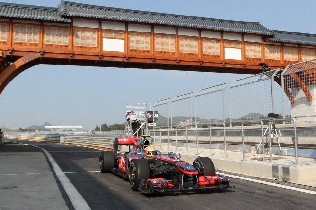 Si hubiera que definir el circuito de Yeongam en pocas palabras, seguramente utilizaría las siguientes; extraño y deslizante. Así es como ha sido el nuevo circuito de Corea en su debut en la Fórmula 1. Un debut que ha visto a Lewis Hamilton llevarse el mejor tiempo a bordo de su McLaren Mercedes.
