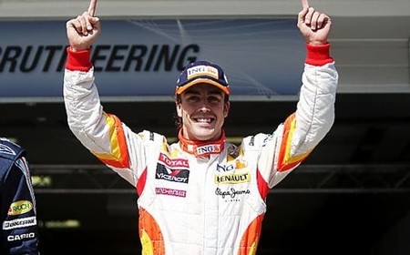 Y allí estaba el asturiano en el parque cerrado. Que entre cambios de la primera posición casi constantes entre Mark Webber, Lewis Hamilton, Nico Rosberg, Sebastian Vettel que también estaba luchando por las tres primeras posiciones y él no sabía/n en qué posición había/n terminado.
