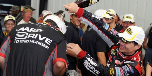 No es nada extraña una victoria de Gordon en la pista de Pocono, ya que es la sexta vez que lo consigue y curiosamente es la segunda ocasión en la que la lluvia le favorece. Y es que tras el accidente de “superman” en la vuelta numero 91, el liquido elemento comenzaría a caer cuando la carrera todavía se encontraba neutralizada, obligando a los comisarios a dar por finalizada la carrera siete vueltas después sin que Jeff no rodará en ningún momento con bandera verde siendo líder.