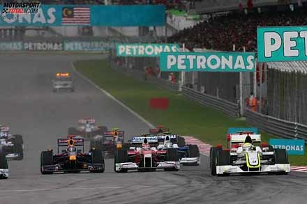 El GP de Malasia más caótico y esperpéntico de su 11 años de historia ha finalizado definitivamente con la victoria de Jenson Button, que al igual que los otros siete pilotos que han entrado en la zona de puntos, sólo sumarán la mitad de los puntos en juego, al no haberse llegado al 75% de la carrera.