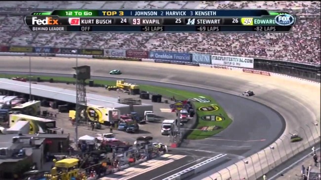 El último periodo de banderas amarillos hizo albergar opciones a otros pilotos, pero en un sprint a 32 vueltas, Johnson no se dejó sorprender por Kevin Harvick. En la general, dominio de los pilotos de Roush Fenway Racing con Greg Biffle Lider y Matt Kenseth en segunda posición. Dale Earnhardt Jr avanza hasta la tercera posición.
