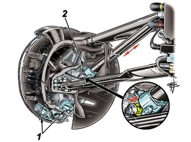 Para que un elemento pueda utilizarse con fines aerodinámicos, éste debe estar unido de forma rígida al monoplaza y no debe poder moverse con respecto al chasis. Por otro lado, el sistema de control de altura también afecta al apartado correspondiente a las suspensiones. Según el artículo 10.2.3, el sistema de suspensión no se puede ajustar mientras el monoplaza está en movimiento. Ahora la pregunta es lógica. Antes de dar la primera aprobación, ¿la FIA no podía haber realizado ese estudio más concienzudo? Igual es que tenían mucho trabajo y les daba pereza. Pero claro, alguien se quejó y hubo que ponerse en marcha.