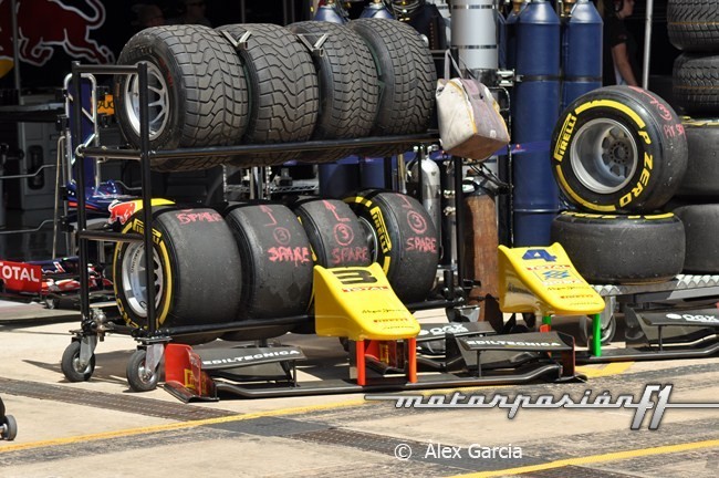 La Fórmula 1 y Pirelli han estado trabajando durante un tiempo para que la GP2 pueda tener neumáticos que se parezcan lo máximo posible a los que usa la Fórmula 1. Por lo tanto, a partir de Silverstone, cada piloto tendrá un juego más de neumáticos “Option” (los más blandos), que significará que cada piloto tendrá un total cinco juegos de neumáticos de seco para usar durante el fin de semana. Estos juegos serán tres de los más duros y dos de los más blandos.
