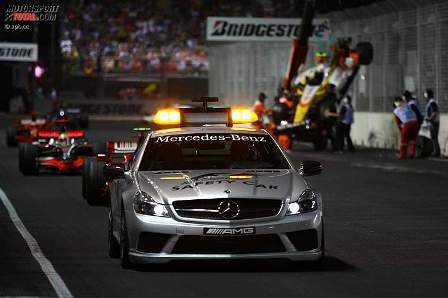 Hoy, nuevamente, el Safety Car ha salido en el momento menos oportuno para la gran mayoría de los pilotos que se estaban disputando la victoria. Si alrededor de la vuelta 15 tenían que empezar a entrar los favoritos, ésa ha sido la vuelta que el azar ha estimado oportuna para que el Safety Car hiciera su aparición sobre las calles de Singapur, destrozando la carrera de un buen puñado de pilotos que han entrado en cuanto el pit lane se ha vuelto a abrir.