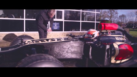 A bordo del que ha sido su monoplaza en las dos últimas temporada, Grosjean se dispone a remolcar una de las míticas caravanas Airstream en las que en el interior, Maldonado trata de disfrutar de un café mañanero. El estruendo de los V8, que algunos ya comienzan a echar de menos, rompe la paz del venezolano mientras a la par que algunos objetos de patrocinadores de la escudería, como una bebida energética y un desodorante, comienzan a perder su estabilidad.