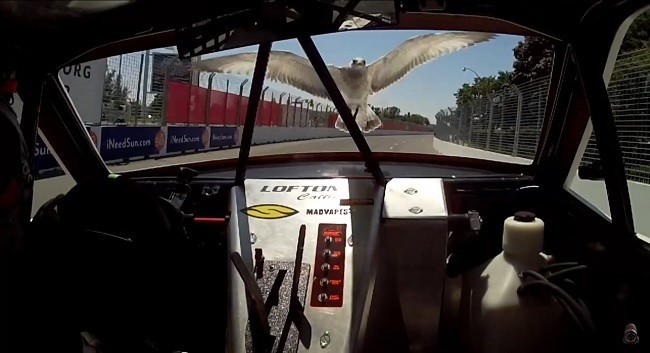 Es el caso de los trucks de la nueva competición organizada por Robby Gordon. Los Stadium Super Truck son un verdadero espectáculo, tanto en los circuitos realizados en los estadios similares al supercross, como en el caso de ser carrera telonera en un circuito urbano. En esta ocasión, la prueba que se disputó en Toronto nos dejó una curiosa imagen que afortunadamente no tuvo mayores daños para el piloto, Justin Lofton, que tiró de sangre fría ante la secuela del “Pájaros” de Hitchcock.