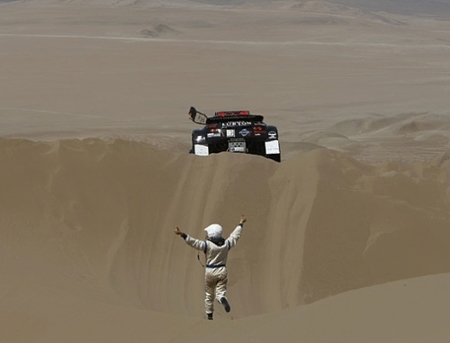 Casi sin darnos cuenta el Dakar 2010 Argentina - Chile va aproximándose a su ecuador, y en la etapa de hoy, novena jornada los participantes saldrán del duro desierto de Atacama que tantos pinchazos y alguna que otra avería mecánica ha dado a algunos participantes. Aunque por fortuna, tampoco se han sucedido muchos abandonos. Una buena señal. En este post os traemos las imágenes de coches y camiones de la octava etapa disputada ayer domingo.