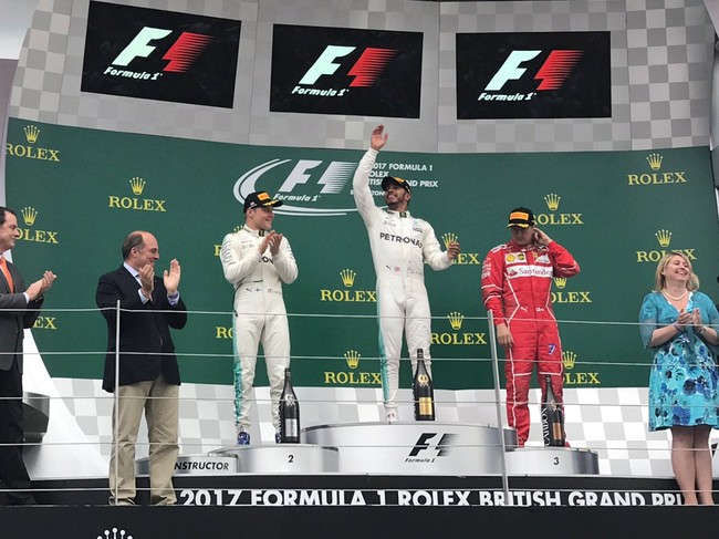 Lewis Hamilton vuelve a ganar en el Gran Premio de Silverstone de Fórmula 1 por delante de su compañero de equipo Valtteri Bottas quien remontó desde la novena posición. Kimi Raikkonen ha sido tercero, tras verse obligado a pasar por boxes en las últimas vueltas con los neumáticos delanteros destrozados. Mismos problemas que relegaron a Sebastian Vettel a la séptima posición.
