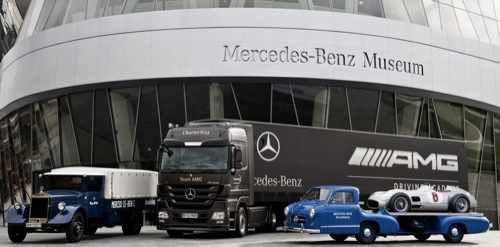 El museo de Mercedes-Benz en Stuttgart celebra este año el 75 aniversario de "las flechas de plata":http://www.racingpasion.com/retro/las-flechas-de-plata-de-auto-union-y-daimler-benz-cumplen-75-anos-parte-1, y lo conmemora tabién con una exposición de camiones que, a lo largo de este tiempo, han servido para llevar sus coches de competición.
