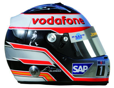 Alonso: “Son los colores que usaba hace 20 años. Mi primer casco, regalo de mis padres, era rojo, blanco y negro. Este año quería volver a mi diseño original. Eso sí, conservo las flechas plateadas que me han acompañado siempre”.
