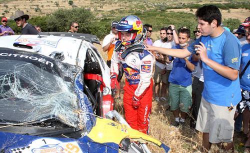 Sin embargo un exceso de fogosidad del francés le hacia tocarse contra una roca y destrozando su Citroën C4 WRC tras varias vueltas de campana, algo que hará imposible su reincorporación por el método del SuperRally. Tanto piloto como copiloto han salido ilesos del lance. Mientras Dani Sordo, segundo clasificado, recortaba la diferencia hasta quedarse a tan solo 1,8 segundos de Mikko Hirvonen que todavía estaba asombrado por la noticia del abandono de Loeb.
