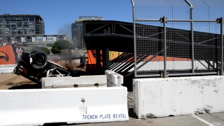 Los estadounidenses siempre más centrados en el espectáculo que en la seguridad han situando dos rampas metálicas que obligan a los pilotos a encarar un salto de 70 pies. El primero en tener problemas ha sido el finlandés Toomas Heikkinen. El piloto que cambiaba esta temporada el Europeo de RallyCross por el GRC y su habitual Saab por un Ford Fiesta, se quedaba corto e impactaba fuertemente con la rampa destinada a recepcionar el coche después del vuelo.