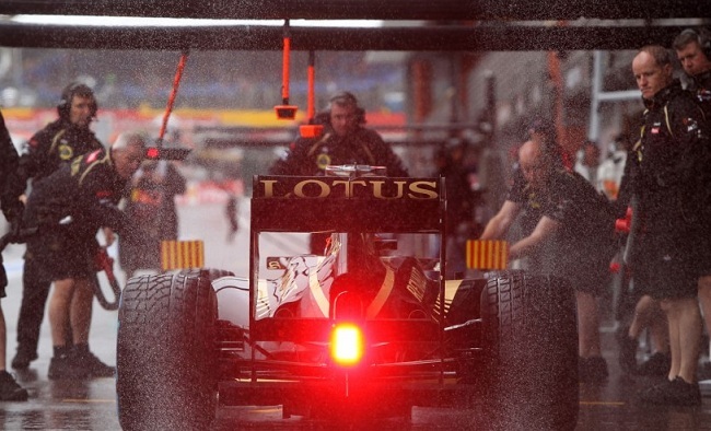 Las dos sesiones pasadas por agua de la jornada de ayer han obligado a muchas escuderías a modificar sus hojas de ruta. Una de ellas ha sido Lotus, de la cual se esperaba que estrenase en este Gran Premio su novedoso y muy comentado doble-DRS. Sin embargo, dicha lluvia ha impedido probar este elemento aerodinámico y por tanto, su utilización este domingo en la carrera se hace imposible.