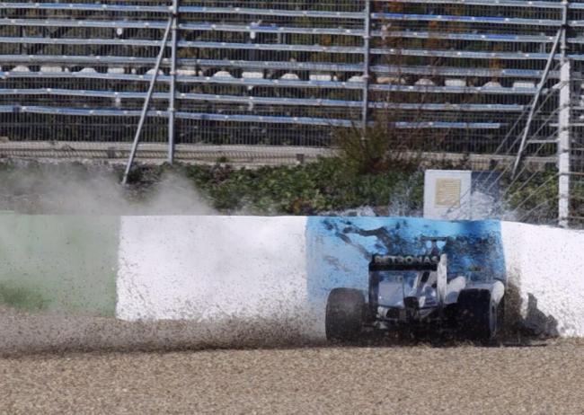 En su primer test oficial, el piloto británico se pasaba de frenada al final de la recta de meta del circuito de Jerez y acabada impactando con las barreras de protección. Tras tan sólo 18 vueltas, el primer día de test de pretemporada había acabado. Y todo ello a pesar de que los monoplazas hoy están rodando con un compuesto especialmente indicado para las bajas temperaturas y que aporta a los monoplazas un agarre extra. A continuación, el vídeo del accidente.
