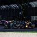 El caos se ha desatado por detrás. Fernando Alonso ha cazado otro podio más a pesar de que Carlos Sainz se lo ha llevado por la delante en la segunda salida. Una oportuna bandera roja reinstauró el orden previo y permite que Alonso mantenga el pleno de podios, de nuevo en la tercera posición.