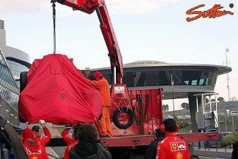 El heptacampeón (como mucha gente lo llama) Schumacher debutó hoy con el Ferrari V8 durante unas pocas vueltas, antes de acabar gracias a un trompo metido en la gravilla de Jerez. El alemán perdió el control de su coche en una curva lenta llamada curva Michelin (ironías de la vida), y terminó antes de tiempo los tests en su retorno a las pistas después de las, según él, no tan merecidas vacaciones. El Ferrari se quedó cerquita de los muros y al parecer no presentaba ningún daño visible, pero fue inmediatamente retirado de la pista y de la vista de los aficionados y rivales. Vete tú a saber si continúan los problemas de suspensiones que sacaron a Luca Badoer el otro día contra las protecciones. En principio Michael volvería a rodar hoy, pero seguimos a la espera de noticias al respecto En el equipo se pusieron de firme con el coche y Schumacher pudo hacer el mejor tiempo de la jornada, 1m 18.953s.