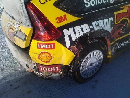 Petter Solberg por su parte volvía a perder tiempo después de salirse de pista y tardar más de cuatro minutos. Sin embargo la peor parte llegaba cuando alcanzaba a Matthew Wilson en pista y le golpeaba en la parte trasera del Focus del británico. Los dos coches han quedado bastante tocados, sobre todo el de Petter, pero se espera que puedan seguir los dos en carrera.
