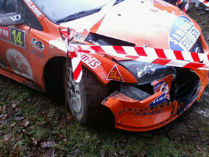 Henning Solberg sigue sin ver la luz al final del túnel siendo esta vez su amortiguador delantero derecho el que le causaba problemas. “Hemos tenido mucha suerte, ha pasado en la primera recta. Íbamos a unos 150 KH cuando - ¡bang! - el amortiguador ha atravesado el capó, nos hemos salido y hemos ido a parar contra un árbol". El nórdico se lamentaba ya que no es la primera vez que tiene este fallo mecánico, en Nueva Zelanda ya le pasó algo parecido, aunque posiblemente podrá tomar mañana la salida.