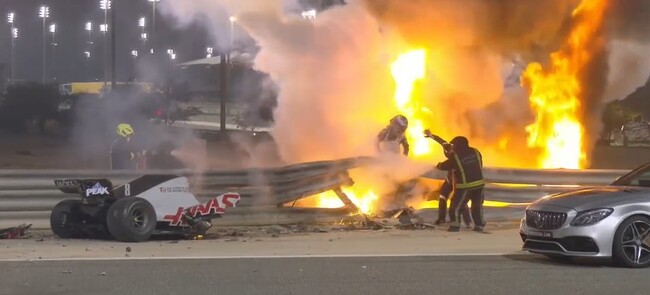 Grosjean ha cometido un extraño error durante la primera vuelta. Giró bruscamente el volante y se chocó contra el Alpha Tauri de Daniil Kvyat, saliendo disparado contra las vallas. Enseguida hubo una gran explosión y una nube de fuego cubrió el monoplaza de Grosjean. Se mascaba la tragedia, pero el alivio llegó minutos después, cuando la propia Fórmula 1 comunicó que el francés estaba bien.