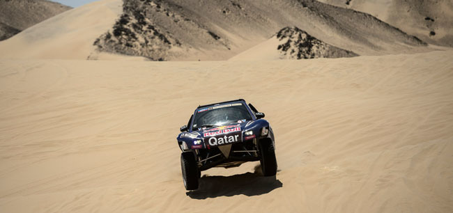 El líder Stéphane Peterhansel se ha mantenido por detrás de los dos buggies y al final de la etapa tan sólo ha cedido algo más de un minuto. Cuarto ha sido Giniel de Villiers que se ha dejado en meta 4 minutos y 17 segundos. Y aquí ya comienzan las diferencias ya que el Top5 lo hacerrado Nani Roma con casi siete minutos de retraso, justo por delante de su compañero Leonid Novitskiy