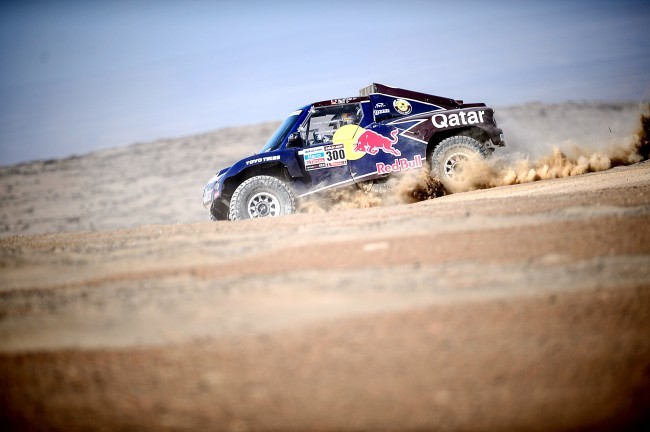 La victoria de etapa era una vez más para Nasser Al-Attiyah. El qatarí sigue con su estrategia de atacar hasta el último kilometro. Aún así, el máximo temor del equipo Qatar Red Bull Team es que llegue el momento de que los problemas mecánicos (de un coche demasiado joven) ataquen también al coche del ganador del Dakar 2011. Por su parte, Robby Gordon terminaba tercer, detrás de Stephane Peterhansel, y lo que es más importante, sin volcar.