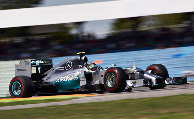 Calor, mucho calor. Puede que Hockenheim no sea un hervidero estos días en cuanto a público pero lo que está claro es que sí que hierve, en cuanto a temperatura. Los sufridos neumáticos Pirelli lo han pasado mal en una tercera sesión de entrenamientos libres en la que Mercedes ha vuelto a dominar, con Nico Rosberg marcando el mejor tiempo. El alemán ha sido seis décimas más rápido que su compañero de equipo, Lewis Hamilton, que por su parte no ha estado muy lejos del tercer piloto más rápido.