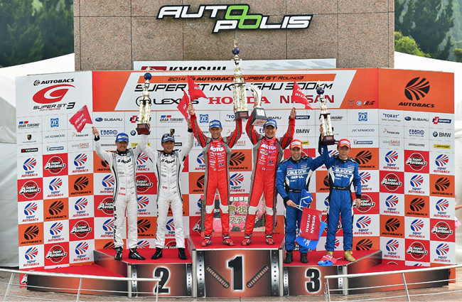 El Super GT vivió ayer un día grande para Nissan con tres de sus cuatro coches ocupando las posiciones de podio en el GT500. El coche oficial de NISMO con el número 23 se llevó una merecida victoria por delante del coche número 46 del equipo MOLA, con el Calsónic en tercera posición. Este último reafirma su liderato en el campeonato mientras que Nissan deja claro que es en estos momentos la gran favorita para llevarse el título esta temporada.