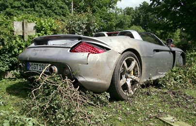 Al volante de un Porsche Carrera GT valorado en unos 600.000 dólares, y que al parecer no era suyo, 'papa' Hamilton se ha metido en un jardín, tal y como suena, y como puede verse en la fotografía.