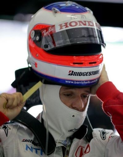 Mirad a Barrichello; parece que lleve sobre sus hombros el peso de toda la humanidad, y no simplemente un casco.