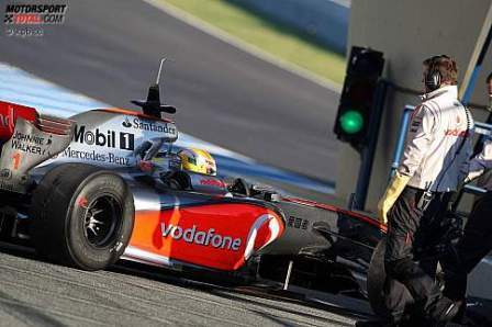 Al parecer, las órdenes de McLaren eran claras y concisas: superar el 1:19.846 que Alonso había marcado en la 3ª de una tanda de 9 vueltas. Quedaban apenas tres o cuatro minutos para el final de los test cuando Lewis saltó a pista con dos gotas de combustible en su McLaren y un juego nuevo de slicks. El resultado: un 1:19.632 que le daba el mejor tiempo (recordemos: con el alerón de 2008), y que dejaba a más de uno en boxes con la sonrisita de pensar qué manera más absurda de desperdiciar un preciado juego de slicks, que están limitados en esta pretemporada.