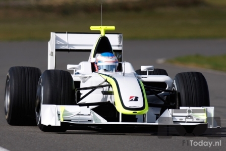 Como ya sucediera con el nuevo Audi R15 para Le Mans, _Autosport_ ha mostrado en exclusiva la primera (y minúscula) imagen de lo que será el primer monoplaza de la recién nacida escudería Brawn GP, y que poco más tarde han mostrado otras webs, como F1Today, de la que son las fotos. Su nombre será BGP 001, y ya ha hecho el primer shakedown en Silverstone con Jenson Button a los mandos.