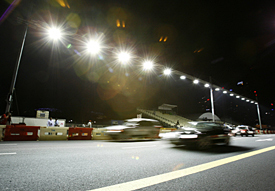 De hecho, en esta primera evaluación sólo se hicieron funcionar dieciséis proyectores extendidos a lo largo de 64 metros de St.Andrew's Road, que permanecerán instalados hasta finales de la próxima semana y se encenderán cada noche a partir de las 19:00. También se hizo una demostración del sistema electrónico "digiflag" que sustituirá la señalización tradicional de las banderas con señales luminosas a bordo del monoplaza.