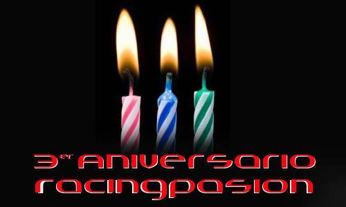 Aún somos un bebé, pero ya podeos decir que sobre nuestras espaldas nos contemplan 3 años. Aunque hablando de lo que hablamos, mejor sería decir que Racingpasión cumple 3 temporadas. Nacimos en 2007 con el objetivo de cubrir todas esas competiciones automovilísticas que tanto nos gustan. Quizás uno de los detalles que más nos caracterizan. La Fórmula 1 es nuestro foco de atención objetivo pero cualquiera que nos lea habitualmente sabe que en Racingpasión hay hueco para todas las competiciones. GP2, WRC, WTCC, NASCAR, IndyCar Series, F3, DTM, IRC, V8 Supercar, FIA GT, Nacional de Rallyes, Europeo de Camiones…en resumen, aquí se habla de todo.