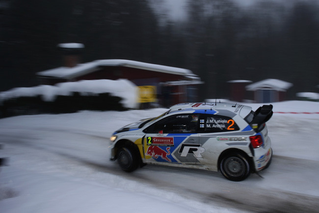 El piloto finlandés se benefició de los problemas de sobrecalentamiento en el Volkswagen Polo R WRC de su compañero de equipo y hasta ahora gran sorpresa del rally, obteniendo así una renta de diez segundos, pero el corto tramo de Hagfors dejó la diferencia en cinco segundos al quedarse Latvala sin clavos. Además, Mikkelsen logró limar otro segundo en la superespecial de Karlstad, quedándose a 3,6 de él.