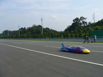 Con 32 kilogramos de peso (sin incluir piloto) y una mínima resistencia al aire este vehículo alcanzó en las pruebas oficiales los 105 km/h, erigiéndose como el primer vehículo propulsado a pilas que supera los 100 km/h y pasando a establecer un nuevo Récord Guinness. Cabe destacar que en pruebas anteriores a la oficial, llegó a alcanzar una velocidad máxima de 122 km/h.